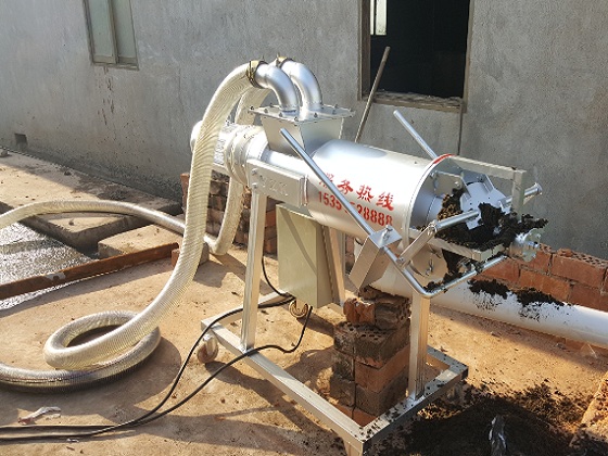 用液下泵將原糞便提高送往牛糞處理機內(nèi),擠壓成型絞龍將糞水慢慢引向人體正前方,另外不斷提升外緣的工作壓力,驅(qū)使原材料中的水份在邊壓帶濾的功效下擠壓網(wǎng)篩,排出排水管道。牛糞處理機的工作中是持續(xù)的,其原材料持續(xù)的提高至人體內(nèi),外緣的工作壓力持續(xù)擴大,當(dāng)大到一定水平時,就將倒料口頂開,擠壓擠壓成型口,做到擠壓成型進料的目地。假如注入的排泄物水過多也會經(jīng)溢液管排在原化糞池中也具有了拌和的功效,經(jīng)螺旋式擠壓成型過慮分離出來出的污水可立即配送至沉砂池等。以便把握進料的速度水分含量,能夠 調(diào)整服務(wù)器正下方的平衡塊,以做到令人滿意適度的含水量。
